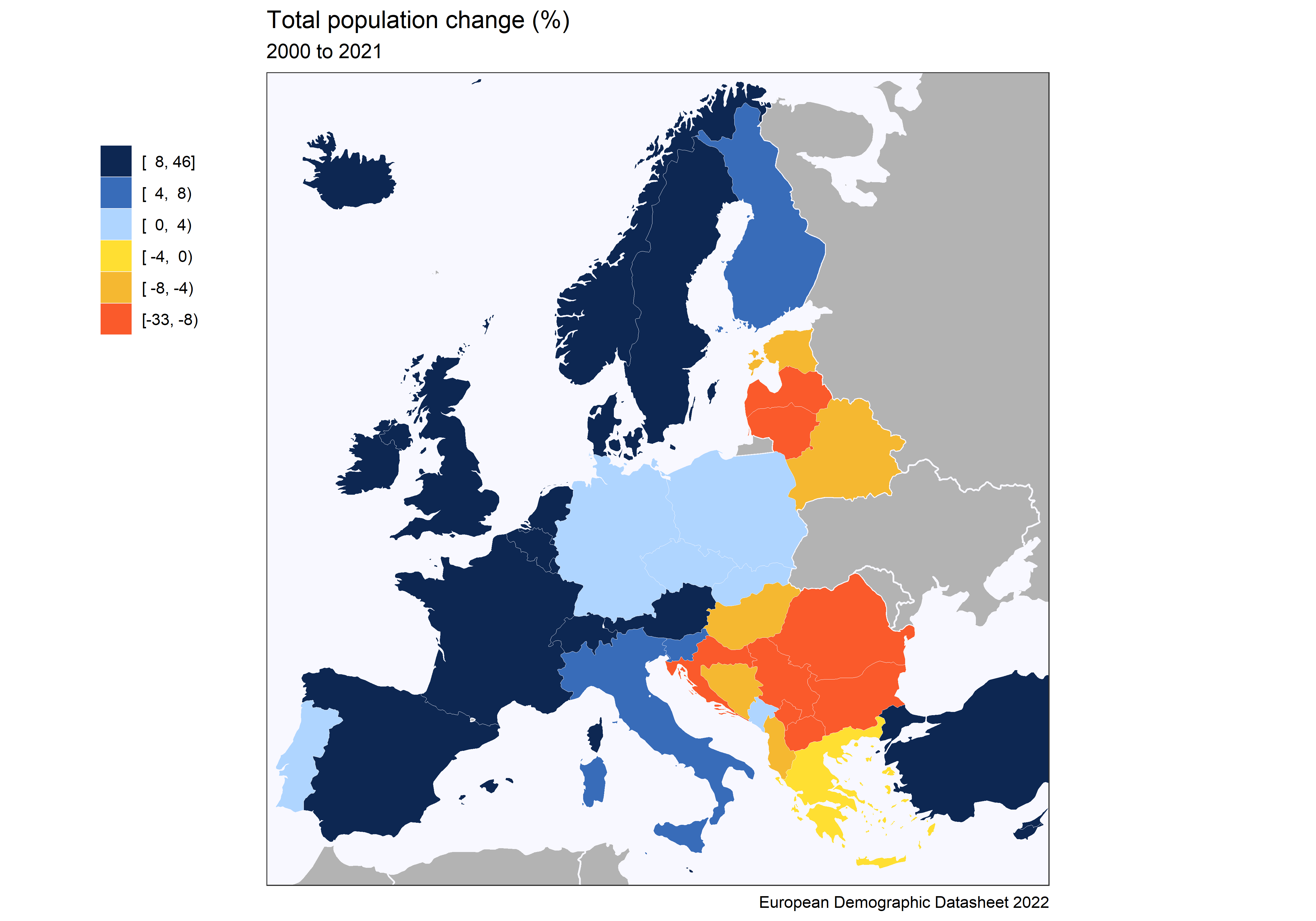 Projected change in working age population - Zero migration (%), 2020 to 2060